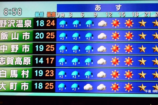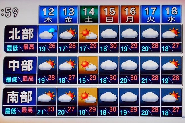 今日の最高気温は27.1℃で今の気温は16.9℃だ稲作もコシヒカリの刈り取りは19日より始まる今年の暑さは特別暑かったが 湧水 を使っているので味はやっぱり上々だといいのだが? 中山間地から平坦部を望む明日の予報週刊予報