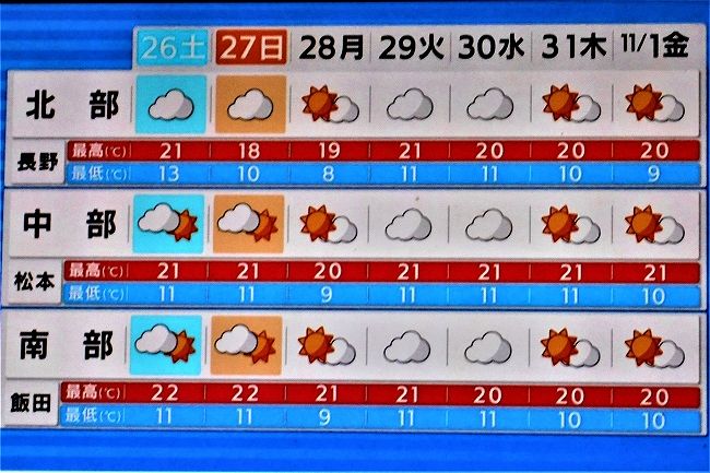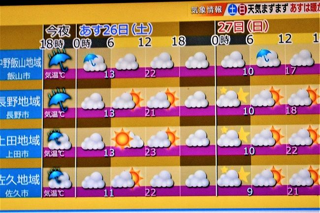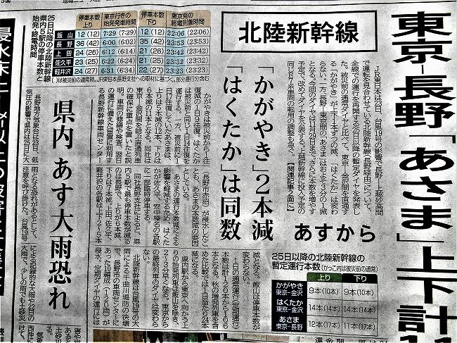 雨も小雨で降ったり止んだりで1日が終わりになり北信地方は千曲川の増水が気がかりな1日になったが2~3mの増水で今の処心配するほどではないらしい 晴れ間を見て新幹線も今日から開通明日からの予報