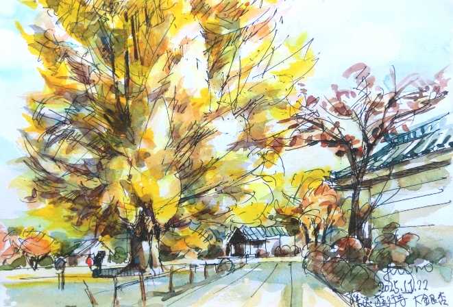 ここは藤沢市・時宗総本山/遊行寺。散歩を兼ねて境内の大銀杏の黄葉見物。期待の通り黄葉…