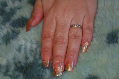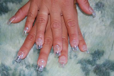 今日の、お客様です。クリアラメのスカルプです。この方は、爪が、反ってしまい弱くてパキパキ折れちゃうそうでスカルプをすると、反りが治って良いそうです。爪が小さくて、形が・・・ってよく嘆いていました。終了後、とても満足そうに何度も眺めてらっしゃいました。この光景を見るたびに、やってて良かったなぁって思いますね。今日の私の爪です。何日か経ってますが・・・まだ健在です(☆∀☆)少し、伸びてきてしまってますが・・・Σ(゚ー^;*)さて、明日は子供の用事で、学校に行ってきます(=゚ω゚)ノ持久走の大会だそうで、何位になれるのかしら。。。頑張ってもらいたいものです。