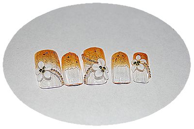 クリア×オレンジでお花とブリオンをプラスで。作り方1 ベースコートを塗り、爪の半分位から一度オレンジポリッシュを塗ります。23分の1位でオレンジポリッシュをもう一度塗ります。3先端だけオレンジポリッシュを塗ります。4ゴールドラメをちょこちょこっと塗ります。後はお好みで・・・。最後にトップコートを塗って終了です。最近、ホント歳のせいか・・・ちょっとしたことでも目が疲れてしまう。旦那に「老眼が始まったんじゃないの?」と、この間言われた。「は?この歳で?」おいおい、あたし、そんな歳くってるか???いや~確かに視力は全然落ちてる。前に眼科に行った時、「そんなんで車の運転するのは殺人者ですよ」って言われた。でも、免許は一応眼鏡使用ではないんですが・・・。そろそろ、メガネのお世話にならなくてはか・・・。そういえば、最近偏頭痛も多いなΣ(・∀・`;) これで、メガネかけたらもっと酷くなりそうだけど。でも、やっぱり乱視も酷くなってるから今度、眼鏡屋に行ってこなくちゃだわ。さて、今日も何とか一日終わりました。明日は、子供たちを連れて、今度こそクリスマスプレゼントの下見してこなくっちゃ。ランキングに参加してます。良かったらご協力お願いします。ぺこり。