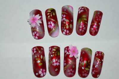 最近何もやってなくて、野放し状態だったのでデザインを変えてみました。今回の薔薇は「リアル」に作ってみました。中指の、ストーンは今回楽天で購入してみたマシーンカットのラインストーンですがやはり、どうしても、「スワロ」には負けてしまうようです。しかし、ストーンはいくらあっても良い物ですよね。私は、結構使ったりしますので、今までにいったいいくらつぎ込んだのかしら・・・。今月だけでも、4万位使っているのかしら・・・。毎回、ファイルやら、何やらで大変でございます。とうとう、スカルプ筆も駄目になってきました。寿命です。どんなに、高価なブランド物でも、「筆」に関して当たり、はずれ、があります。1万くらいのものなので・・・「はずれ」はさすがに困りますけど。さてさて、どうやら・・・風邪をひいてしまったようです。熱は、出ないのですが、「鼻水と咳」が出てしかたありません。何だか、眠る前と、起きがけが、とてもひどいので困っちゃいます。今年も終わりが近いというのに、この有様。何だか、最近ツイてないような・・・。おかしいな。。。ここのところ、忙しくって【ケンシロウ】は、封印しているのに・・・。どこで、運を使っているのだろうか・・・。それでも、熱はないからいいか・・・。しか~し、子供たちがうるさくて困るなあ・・・。たとえ、風邪でも休めないし、何だかなぁ(´・ω・`)明日は、嫌でも台所の大掃除をしなくちゃ明日も、頑張ろう~。(`・ω・´)ランキングに参加しています。よかったらポチッ!とクリック応援よろしくお願いします。ぺこり。