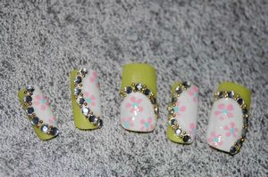 今日は、早く春が来て欲しい。そんな気持ちで、このチップを作ってみました。 爽やかな色をと思って、使ったつもりなんですが(実物は爽やかな黄緑です)今日は、画像がちょっと変かしら・・・しかも、微妙にチップがへなちょこに並んでます。しかし、何を隠そう、画像を撮り終えた後ポイポイと置いたので、まだ、しっかり乾ききってなかったチップは、撃沈致しました。あああ、何て大雑把なのかしら。クリックするとランキングです。春だねって思ってくれた感じの良い方応援宜しくお願いします。ぺこり。さて、今日は、一日、お金の支払いに追われましてあちら、こちらと、銀行めぐり・・・。月末は、支払いが多くて困ります。でも、やらねば、いかんので、仕方なく重い腰をあげて行ってまいりました。何だか、時間が余ったところで、小学校に近いということもありましてついでに、お兄ちゃんを迎えに行ってあげようと・・・んっ?ん”-------!!!!!!!何やら大勢で、校舎から走ってくるではないか・・・。何?何が起こったの????私の周りを子供たちが取り囲み、第一声「爪、見せて」へ?「はいよ。」見せてあげると、引っ張る、引っ張る。「何~取れない~~」←当たり前だ、取れたら商売にならないじゃんか。そのうちに、調子付いたのか腰は叩くし、くすぐるし・・・。ああ、良いおもちゃ状態だ。しかし、相手は子供。ここは、我慢、我慢。←やっと最近大人になれたらしいよ(こっそり)もう小僧、早く出てきてくれよ~~。しばらくすると、あーーーやっと、うちの小僧が出てきた。そこで私が、手招きをすると、何を思ったのか!!うちの小僧は自分を指さして「俺????」っておい、チミの母さんは他に誰が居るんだ・・。てか、そもそも出てくるの遅いって。早く帰るぞっ。逃げるように帰ってきた。←子供は離さないし、最悪だ。しかも、腰痛い。何で、他にもお母さん方いるのに、私なんだ???おもちゃにし易いのだろうか・・・。まいっか。しかし、最近は、事件が多いせいなのかお迎えに来るお母さん方、多いですね。しかも、乗り合いで帰ってたり。本当に、おかしな世の中になっちゃいましたねぇ。自分も、迎えに行くのは甘いんじゃないかとなるべく行きませんけど。実際、何度か痴漢や、変な人も出ています。怖いですねーーー。地域のボランティアさんも居てくれますがそれでも、やはり心配です。ああ、いつになったら、子供が安心して学校に行ける日が来るんでしょうか。最近ツクヅク思うShirochiiでした。 ランキングに参加しています。ぽちっとクリックよろしくお願いします。ぺこり。