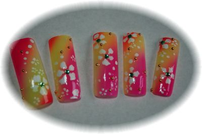 今日のチップは イケてるって思ったらクリックしてね。←ランキングに飛びます。この作品はずいぶん前作成してものですが、載せてみますね。何とも、派手系ですが、夜遊びにはモッテコイ状態で作ってみました。 こちらも、以前作った作品です。春に、合うのかしら・・・と思いUPしてみました。好みは分かれると思いますが、ネイルは、色合いでも派手になったり、お淑やかになったり、色々出来るのでよく、色違いで作ったりしてます。さてさて、今日は、朝から、下の娘が「幼稚園には行きたくないと」言い張りまして仕方なく、事情を聞いたところ「先生が怖い」「友達にいじめられた」とか様々な事を言ってまして幼稚園に遅刻の電話を入れて状況を聞いたところ「幼稚園に来たらすぐに着替えて誰よりも早く外で楽しそうに遊んでいますけど・・・」とのことでした。何とか、なだめ賺して、幼稚園に送って行こうと旦那と二人で悪戦苦闘。しかも、旦那の言う事には、まったく耳はかさない。Σ(´~`;)辛い腰痛にムチ打って、だっこしながらやりましたよ、色々。ええ、やりましたとも!!半泣きになりながら・・・。幼稚園に着くなりに、「上機嫌」なんだったのだ!!!!!あの苦労は。Σ( ゚ー゚*;))それから、旦那とランチへ出かけ帰りにお迎えに行き、二時間ほど家でくつろいでるとまた、はじまった。グズグズ・・・しかもトイレでおもらし。早く着替えないと風邪ひくよ・・・と、腰痛と戦いながらあれや、これや。しかも、また「だっこ」だーーーーー。拷問だ。この時も、旦那は嫌と泣き叫んだ。旦那は(´・ω・`)ガッカリ・・・勿論、私も、(´・ω・`)ガッカリ・・・こんなで、腰が治るはずもない。なかなか、辛いが、何とかなるだろう。。。来週こそは、病院へ・・・そう思う、Shirochiiでした。 ランキングに参加しています。ぽちっとクリックよろしくお願いします。ぺこり。