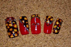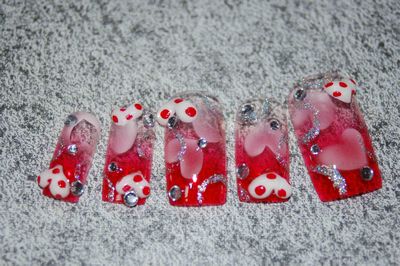 昨日、プレゼント企画を発表しましてここの、常連様方が早速集まって頂き、ありがたく思っております。コメントを残していって下さった皆様方「ありがとうございました」ご多忙中の中、呼びかけに応えて下さって心より、お礼申し上げます。さて、私、SHIROCHII今日は、気分も新たに、情熱を注いでいこうという気持ちとバレンタインも近いという事から、赤を選択しました。 最近めっきり、赤を自分には使わなくなってました。こうやって作ってみますと、何だかやる気も出てきます。流石は、情熱の色。何故か、ストーンも最近ではこういう使い方が好きです。気に入ってくれたら、応援宜しくお願いします。またまた、話はガラリと変わっちゃうんですがちょっと変わり過ぎるけど許して・・・・。今日、「キスイヤ」見てまして・・・どうも最後の方はTVと会話してました。←うんうん。おばちゃん。だってね、彼女が前彼と浮気して、それを許してそっからも、何回か前彼のとこから連れ戻して、付き合ってる・・・。「へ?でっ?」彼氏「やっぱり、まだ彼のことが好きで、前彼のとこに行ってたり連絡とってるんじゃないかと・・・」「ん。そりゃーそうだーーー思うね思うよ。それは」で、結局今彼、元彼6対4で。元彼のことも彼女は思ってたわけだ。「んな、女別れちまえ」こう思ったんだよ。んで、彼が「別れよう」と言ったら彼女「別れない、もう元彼とは会わない連絡も取らないチャンスが欲しい」彼氏「もういい、俺何回、チャンスやった?もう信じられない」SHROCHII「そうだーーー言ってやれーーー」←激しくエキサイティング。この場では「別れる」となって、オイラも激しく頷いた。その後の彼女のインタビューで・・・「彼は、また戻ってきてくれるって気持ち、少しはある」て、言っちゃったよ~~~この人!!!!!!!!って思っていたら「この後、しっかり二人は寄りを戻しました」って。「へぇ・・・・・・・・・32へぇ。」なんだかな~・・・あ~あそんなんだから、元彼のとこ行っちゃうわけよ。そんなんで、いいんかな・・・。そう思った。←ね。おばちゃんでしょ~。これ、まんま、TVに向かって話しかけてましたから・・・。ほんと、最近人前でも、平気で「肩トントン」しちゃうしさー。ショッチュウ、鼻歌うたっちゃってるし。井戸端会議もしちゃうし・・・。なかなか立派におばさんになってきたSHIROCHIIでした。失礼しました。