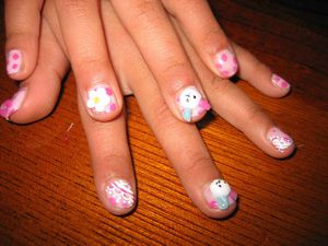 今日のサンプルは「折鶴ネイル」これ、かなり生活するには不便な代物だと思いますが。あと、少しで、雛祭りなので、純和風の物をと思いまして作ってみました。これ、かなり大変でした。壊れないように3Dで作ってあります。かなりの、強度です。しかし、細かい作業で、目が疲れました。途中、「何で、こんなん作ろう、思っちゃったんだろ?」とか考えちゃいました。でも、無事に出来上がったので、良かったですが。 さて、今日ですが、朝からとても、腹が立ちました。うちの小僧、朝何やら、宿題の漢字ドリルやっていました。なので、私が「昨日、宿題終わったって言ったよね」昨日は、私が夕方帰ってきたので、旦那が見てるものだと思い一応小僧に確認したら、「やったもん」って言っていたので安心していました。だけど、やってなかったんだよね。私「どうして、嘘をつくの?」と怒ると彼は、泣き出した。泣いて済む問題じゃない。しかも、朝いつも一緒に行く友達まで待たせている。やり終えた後、筆箱に消しゴムさえ、入れ忘れてる。しかも、消しゴムを見たら、新しいのになってるし。消しゴムは、この前、新しいのに変えたばかり。どうして、また新しいのに変えたんだと聞くと「盗られちゃったんだ」と言った。ここで、いつもなら、誰に?とか、どうして?とか聞くのだが私の中に、余裕が無かった。いきなり、「どうして?そんなはずないじゃん」今、思えば、どうしてそんなこと言ってしまったんだろうか・・・。宿題で嘘ついてしまったこと、これとは、別問題なのに。その、怒ってる姿に、友達も困惑。ああ、自己嫌悪。(友達にも謝り、小僧にも、朝は理由も聞かずごめんねと謝ったけど)朝は、そんなんで、バタバタしていたので、詳しい理由を聞いてあげなかった。帰ってきてから、もう一度聞いてみた。どうしたのか、分からないんだと言う。この人の事だから、落として、そのまま忘れ物箱の中なんだと思うけど。いじめられてる、とか、そういうのではないらしい。以前も、先生に言われたが、「お母さん、子供さんに新しい物あまり与えないで下さい」でも、鉛筆が一本しか入ってないのにどうしろと???先生曰く、「忘れ物の中に、彼のは結構あるんで」ああそうですか。極めつけは「お金、たくさんあるんですね~」いや~金は、無い。だけど、この一言がたまらなく、腹が立った。私「そんなことは、関係ないんじゃないですか、そういう一言はおかしいと思いますけど?」多分、先生は良く思わなかっただろう。小僧には、この時点で、今度物を大事にしなかったらゲームもやらせない。DVDも見せないと約束させてあった。なので、今日は、ゲームも禁止。勿論、DVDも見れない。だけど、約束は約束。暫くしたら、許してはあげようと思うけど、今はまだ許さない。私は、何よりも、嘘をついた事に腹が立つ。その事を彼には、分かってもらいたい。約束を守れなかったり、嘘をつく、どれだけ嫌な気持ちになるか・・・。そういう私だって、もちろん、嘘をついたことが無いことはない。だけど、人のせいにしてみたり、そういうのは何か嫌だ。もう一つ、愚痴幼稚園に、お迎えに行った時に、すれ違うのに困難な道前から、ベンツがやってきた。しかも、堂々真ん中寄り。おばさんだったので、仕方ないなと思い歩道に乗り上げてまで避けた。なのに、「挨拶なし」( ゚Дメ )グヲヲヲッこれ、結構いるよね。別に、手をあげるか、ぺこりってするか、クラクション鳴らすかどれか一つで済む事じゃん。小さいこと言ってるのかもだけど、「挨拶なし」これも嫌。は~でも、すっきりした~~~。見てる人は、嫌な気持ちになっちゃうかもだけど、ごめんなさい。つき合わせちゃって。そういえば、全然関係ない話だけど今日、娘、鼻血ブーーーーしてました。彼女、明らかに鼻ほり過ぎ・・・。何か、住人でも、鼻の中に住んでるんだろうか・・・???「妖精が鼻の中に居たんか~~~~?」と聞くと←はな違い。妖精は花じゃんね。「うん、いたーーー。」「そうか、でも、ほっちゃうと鼻血でちゃうからやめよう」「うん。分かった」そうかー妖精さん・・・鼻をかんだ時に一緒に出てくれると良いね。娘よ。今、彼女は、鼻にティッシュつめたまま寝ている。そろそろ、取っても大丈夫だから、取らないと。←忘れてた。では、今日はこのへんで。 ランキングに参加しています。ぽちっと応援よろしくお願いします。ぺこり。