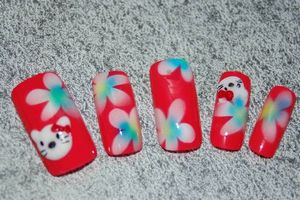 今日のお客様は、なんと、私SHIROCHIIの娘であります。この人、人が仕事していても、ジーッと眺めてまして自分もやるーと言ってうるさくてたまりません。しかし、あまりにも、毎日「じゃあ、明日ね~」とか「幼稚園から帰ったらね~」とか、言い過ぎなんでさすがに、気の毒なんで、やりました。「ウサハナ、お花・ハート」これらは別に作って3Dで後から乗せて。どうやら、満足したようです。やってる、最中も「パーしててね」とか、もう一つの手は、はい先生のポーズしててねとか"(,,゚Д゚)∩←こんな、ポーズです。色々、言わないといけなくって、段々子供なんで飽きてしまう。なので、時間との格闘でした。 ランキングに参加しています。ぽちっと応援よろしくお願いします。ぺこり。さて、今日の昼間なんですがテレビで、「偶然あった私の体験」みたいなのやってたんで、小僧とみてました。(小僧は休み)それを、見ていて思い出したんですがもう、かれこれ、かなり前の話なんですが私には、凄く仲の良かった男友達が2人いたんですね。彼等は、私のお客様でもあり、年も近かった為プライベートでも、飲みに行ったり、昼間はみんなで遊びに出かけたりそんな、普通に楽しめる友人だったんです。ある日、私も仕事はお休みで、他の男友達と女の子も合わせて何人かで、飲みに出かけたんです。そうして、たまたま行きつけの店へ行った時に彼等と会ったんです。でもね、彼らは家が、かなり遠かったんですね。ほぼ、隣の県という距離なんで、そもそも普段はそこの店を使うことなんて無いし、初めて来ていたんです。その、偶然にびっくりしてしまった私。「どうしたん?何で、ここに居るん?」って聞いたんです。彼らは「何となく、来たんよ。どうしてなんかなぁ・・?」そんな、会話してました。彼らは、2人、女の子を連れていて彼らの一人が、「SHIROCHII、彼女できたんよ、言おうと思って・・・でも、いつも居ないね~電話しても」そんな会話しながら、馬鹿騒ぎして、TRFを踊りながら歌ったりしてました。それから、私たちは先に友人たちと帰ったんだけど次の日の昼に、電話が一本かかってきたんです。二人が亡くなったと・・・。私たちが帰った後、代行で、海まで行き4人で、朝まで海で酔いを醒まし、彼女達を車で送って行った。その帰りに、事故で亡くなった。頭は真っ白になり、泣き崩れ、それでも電話をもらった友人と(一緒に飲みにも行った)彼らの家に行きました。変わり果てた姿。それから、一ヶ月位経って、やっと事故現場にお線香をあげに行きました。その日は、小雨が降っていて、風ひとつ無い、静かな夜でした。お線香を現場に置くと、足の辺りが、サーっと何かが触った気がしました。その時、お線香の炎が、勢い良く燃えて。「ああ、別れを言いに来たんだろうな」そう思いました。偶然にも会ったその日に、永遠に別れてしまった。だけど、その日のことは、今も何年経っても忘れない。そんなことを、ふと思い出しました。今日は、ちょっと重い話で申し訳ないんですが、こんな、体験をしました。