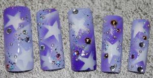 今日のネイルは「スターネイル」最近は、エアブラシをあまり使ってなかったのでエアブラシを使っての作業です。画像はこちらです。↓今日は、ハンドピースを持つ手も、何だかぎこちなかったけどどうにか、出来上がりました~。コメントを下さっている方、このブログを見てくださっている方いつもありがとうございます。応援していただいて、感謝しています。これからも、よろしくお願いします。アリガト!(´▽`)さて、今日ですが夕方、友達を駅まで見送って、その後夕飯を食べた後・・・何だか眠くなってしまいまして、眠りました。ええ、ぐっすり。←やってしまいました。子供たちは、まだ夢の中~~~。私が、起きてみたら、なんと旦那が帰ってきていました。旦那には「おはよ~~~」って言われまして。。。なので、「なぬ~~?もう、朝なんか!?」って思って時計を見てみたら、10時じゃん。なーんだ・・朝じゃないじゃん。また、ちょっとした昼寝となってしまったらしい。それから、このネイルを作ったんだけど出来上がるのは早かったんだけど、旦那が徐に話しはじめた。「最近のチミを見ていると、マニアみたいだ」と。なにーーーー!!マニアー??私の頭の中での想像・・・顔文字で例えるとマニア=(:.;゚;Д;゚;.:)ハァハァこんな感じ。何だろ・・・ちょっと嫌。←失礼です。すいません。でもね、でもね、(何故か二回言った)はっきし言って、物凄く速度に拘っている、あなたに言われたくないのよ~。光が登場した時には、絶対に光にするんだーーーとかPCは、ここのCPUがどうとか・・・。私に、CPUの説明されても、よく分かりません。というよりも、専門用語言われても、果てしなく分かりません。なんというか、煮詰まった、一休さんという感じでしょうか・・・。とんちでさえも、解決出来ません。そんな、彼にマニアと言われたあたし・・・。激しく_| ̄|..○←首転がっちゃいました。しかも、話長いです彼・・・。この日記書くまで、彼のマニア話に付き合っていました。そうだーーー!!!あんたこそ、マニアだよ、マニア。ふぅ~~すっきりした~~。ヽ(´ー`)ノ イッチャッタ、イッチャッタ~~~しかも、ここで旦那のことバラシチャッタ。はい。間違いありません・・・彼こそマニアです。←あの顔文字みたいではありませんけど。クスッ。 ランキングに参加しています。ポチッと応援よろしくお願いします。ぺこり。