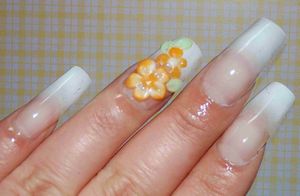 今日のネイルは「ホワイトグラデーション」昨日は、自爪だったSHIROCHII。どーしても、嫌なのでクリアスカルプをはめた。んでもって、エアブラシでホワイトを吹いて、一本だけお花つけました。そうです!!ニンジン色です。画像はこちら↓よく、こうゆーのが、鍋に入っているよね。。。可愛らしーくカットしてある人参。(私が調理したら、確実に怪我します) さて、今日なんですが風が強かったですよね。昨夜は、こちらでは地震もあったし、家は揺れるし何だか怖かったです。←はい。ボロ屋です。(ケッテーイ)午後、幼稚園に小僧と一緒に娘を迎えに行きまして車に乗り込むと同時に娘が、熱弁を始めた。娘「お母さん、今日は風がすごかったね~。」娘「んでね、幼稚園のおもちゃがね、風のせいでね・・・風がゴーーーーって吹いたら、おもちゃがガーーーーって飛んでちゃって、先生がダーーーーって拾って、たいへんだったんらよ・・・・・」←かなりのジェスチャー付き。まあそれが、物凄い身振り手振りで説明してまして・・激しいのなんのってΣ(・∀・*;) 母、かなりおかしかったです。それから夜になって、子供たちが「クレヨンしんちゃん」を見ていたんですが息子が徐に・・・「お母さんとしんちゃんってキャラ似てるよね」とボソリ・・・。なぬ!?幼稚園児とキャラかぶるのか!!いいんだ・・・どうせ、精神年齢低いよ・・オイラ。。。でもよーー、そんな母親に君たちは育てられてんだぜぇ。Ψ(`∀´)Ψケケケまいっか、子供たち困ってはいないらしいし。←まだ分かっていないだけ。と、こんな一日を過ごしました。ネイルランキング←クリック♪ネイルブログランキング←クリック♪FC2ブログランキング←クリック♪ランキングに参加しています。ポチッと応援よろしくお願いします。ぺこり。