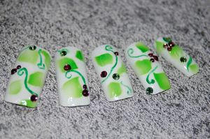今日のネイルは「リーフネイル」爽やかな若葉のイメージで、デザインしてみました。画像はこちらです↓この、若葉という言葉を聞きますと頭の中に浮かんでくる音楽があるんですけどその音楽はとは、スピッツの「ロビンソン」爽やかで綺麗なメロディー。お気に入りの曲の一つです。 ロビンソン 新しい季節は なぜか、せつない日々で かわらの道を自転車で 走る君を追いかけた。 思い出のレコードと 大げさなエピソードを 疲れた肩にぶら下げて しかめつら眩しそうに 同じセリフ 同じ時 思わず口にするような ありふれたこの魔法でつくり上げたよ 誰も触れない 二人だけの国 君の手を離さぬように 大きな力で空に浮かべたら ルララ宇宙の風に乗る凄くいい歌ですよね。最初、この歌を聞いたときには、物凄く感動しましたよ。何となく学生時代思い出すような、そんな歌です。今日は、この歌を聴きながら、このネイルを作ってみましたよ。ところで、今日は凄い雨ですね。頑張って咲いていた桜ですけど、今日で大分散ってしまったのではないでしょうか。ちょっと寂しい気もしますけど、また来年になると綺麗に花を咲かせてくれるんでしょうね。ネイルランキング←クリック♪ネイルブログランキング←クリック♪FC2ブログランキング←クリック♪ランキングに参加しています。ポチッと応援よろしくお願いします。ぺこり。