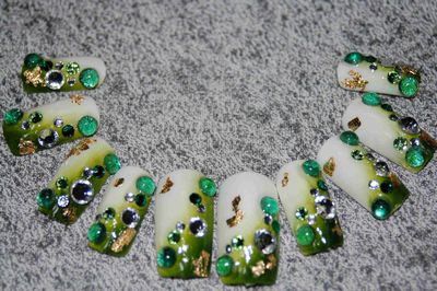 今日は昨日に続きフレンチスカルプの「SHIROCHIIの右手」です。画像はこちら↓今回の右手のテーマなんですけど、「ジュエル」です。このジュエルというもの、なかなか手間がかかりまして左手で、利き腕にアートをするとなると、ブリオン並べるにも手が、プルプルしまして、はっきし言って、やりにくいです。そりゃーもう、真剣そのものですよ。多分アートをしている時の顔、物凄く怖いのではないでしょうか。今回は、ブリオンが曲がっちゃっていますけど、許してくださいね。さて、今日なんですが今日は、朝からちょいと出掛けていまして夕方帰ってきたんですが、頭が痛くってそのまま帰ってきてから横になっていました。何だろう、もうスッキリしちゃいましたけど。ええっと、旦那が休みだったので買い物へ一緒に行きまして某電気店「YAMA○A電気」自分の名刺を刷るのに、紙を買いに行きましてこれ、印刷屋さんに頼むと結構な金額になるじゃないですか100枚で3000円とかしちゃうので。なので、今回は自分でデザインして、プリンターで一気に刷ってしまおうと思いまして・・・。お値段考えたら、自分でやると安いんですねー。インク代入れたとしても、1000円もかからないんですから。それと共に、今回は、娘が無くしてしまったSDカードも購入。一枚予備であるんですけど、こいつが役立たずな16MBなものですから写真を撮るのも、4枚しか撮れないんですよ。なので、一緒に購入してきました。その後、100均に行ってきたんですけど名刺の紙・・・・なんということでしょう・・・売っていました。悲しい・・・ですね。しかも最近では、100均にアクリルパウダーとかリキッドとかプライマーまで売ってるじゃないですか。あれは、どんなものなんでしょうか・・・。私が使っているのは、EZさんの物なんですが以前、メーカー忘れましたけど、違う物使ったらかなり操作しにくかったです。100均で扱っている物は、操作性はどうだろうと?と興味は湧きましたけど絶対に使わなそうなんで、買うのはやめました。こうやって、買い物している間に、頭はガンガンしてきちゃって家に帰った途端、バタンキュー(死語)多分昨日の、巴投げがきいていたんでしょうね、お疲れだったようです。こんな一日を過ごしていましたよ。コメントくださった方、お返事が遅くなってすみませんでした。ネイルランキング←クリック♪ネイルブログランキング←クリック♪FC2ブログランキング←クリック♪ランキングに参加しています。ポチッと応援よろしくお願いします。ぺこり。