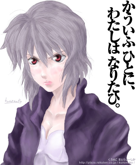、ヅラにするか、高杉君にするか、もう、訳が判らなくなって仕舞って、何だか描けなくなってイライラしたので、気分を変えようと〔攻殻〕の絵を描いてみました。SACの時の服装です。服のディティールは可也いい加減、面倒だったので。装飾は全て端折る。まぁ、良いか。そんな日もあるさ。