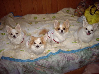 ロングチワワのクルたん一家です(笑) みんなで並んでいます。 連休中はバッチリ仕事。 まだ狂犬病の注射もフェラリアの検査も行けてないわ(泣) やっとヒートも終わったし、2週間経ったのでみんないい臭いになってきたので、シャンプーもしたいのに。 何もできないじゃん(笑)