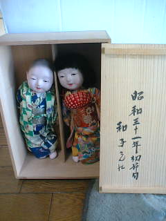 27歳と23歳の娘がいるのでおひな様を出しましたが、早く嫁にいってくれなければなのでそうそうとかたづけました。我が家のおひな様は52年前に私が誕生したときの市松人形それに私の切り絵作品と子供らが5歳の時の作品それに子供らがもらった木目込み人形です。それにひなあられです夕食はちらし寿司と蛤のお吸い物でした。