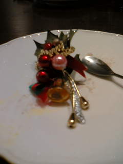 心療内科にいきました。今日は一番だった。先生に本を出すことを話し先生の実名を使わせてもらうことを了解してもらいました。その足で市民病院デイケアへスタッフの看護士さんに校正をお願いにいきました。快く引き受けてくれました。すぐに友だちたちと約束したミニ忘年会に高島屋で会食しました。料理は日本料理、写めとるの忘れた最後のデザートのクリスマス飾りを撮りました。一人は用事があって帰りもう一人とカラオケへ友だちは演歌のみ私はフォークと最近の唄でしたわたし楽しくくらしているようでも今貧血がひどくていつ倒れても分からない体らしい。今の婦人科の先生はホルモン注射を勧めるけどわたしはいまいち乗り気でないのでセカンドオピニオンしたもと市民病院で心療内科の主治医の友だちの大学病院の先生に看てもらうように予約をいれました。相変わらず病院がよいですね。