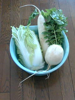 久しぶりに畑に行ってきました。野菜が大きくなってました。採れたのは中国菜、ターサイ、パクチョイ、青梗菜、白菜、赤蕪、丸大根、大根、ほうれん草、春菊です。赤蕪は甘酢漬けにしました。ターサイはサラダやつけ沿いにします。パクチョイ、青梗菜は中華料理ですね。白菜は漬け物や炒めたり煮たりといろいろです。今度の作業所にいくときに持って行きます話は変わりますが次女が働くようになってから活発に友だちと付き合うようになりましたね。嬉しいことです昨日は同期の人たちとモーニングと土岐のアウスレットに夜は友だちの所でかに鍋をしたみたいです。今日は友だちとスケートに行くと出かけました。収穫物の写真です