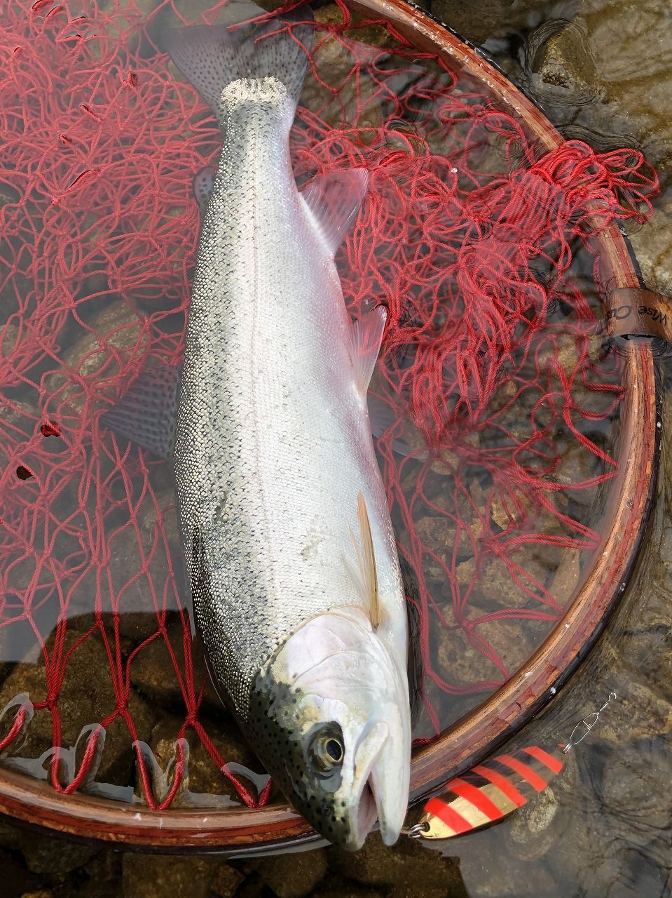 この日は久々にグースファクターさんと♪♪9時に誰も来ないであろうポイントで待ち合わせ(笑)ツルツルの斜面を「あぶねっ!」「おぉーっ!」と湖畔に降りると鏡っす!まぁ~今年はこんなんばっかで...それでも、グースファクターさん「キタよ~♪」って3連発!流石です!!サワサワ~って風が吹き始めた頃ずぅーーん!って重くなった!?魚さん?ってロッドを立てるとグングンって首振ってる(笑)ネットから少しだけハミ出るフックを見ると皮一枚!(笑)綺麗な金アメ♪♪なんだろう???林道側はアフター感バリバリなのにここのは完全復活?アメマスは本当に謎が多いです...コイツをリリースしてすぐに「ゴンっ!!」って、今度は明確なアタリ!グングンっ!って、こりゃ~久々のニジマスかぁ~!?「またキターーっ!!」って叫んだらふっ・・・ってラインから生命感が消えた...で、ここで正午になりタイムアップ!!ということで、2018年の屈斜路湖はこれにて終了~また来年!!今年の締めはたぶんアソコでも寒波が・・・たどり着けるかな?(笑)ルアー:シーレーベル アドロワ モーダ 17g APBロッド:シーレーベル X1-90HHS-TZネット:グースファクター