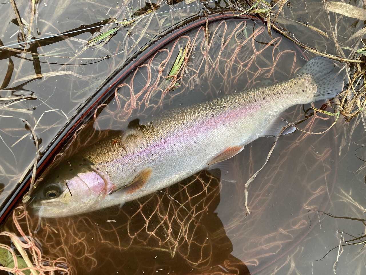 前回から3日しかたってなく、劇的な変化は望めないかなと思いつつ、少し期待して前回より30分早く到着いつも停めている場所は満車!手前に停めて斜面をコケないように降りまたまた開始数投目でプロビアのスローにググっ!これまた良くヒキます♪例年ですと細っ!!ヒョロヒョロ!!とかって思うことが多いのですが、今年はパンパン(笑)その後、フライマンのTさんが釣った直後に一匹追加し、この日も3時間で終了~この湖の氷は全て落ち、これからなのか...もう川へ出てしまったのか...そもそも、そんなに湖に入って来なかったのか...結局のところ行ってみなければ分からない!です!(笑)