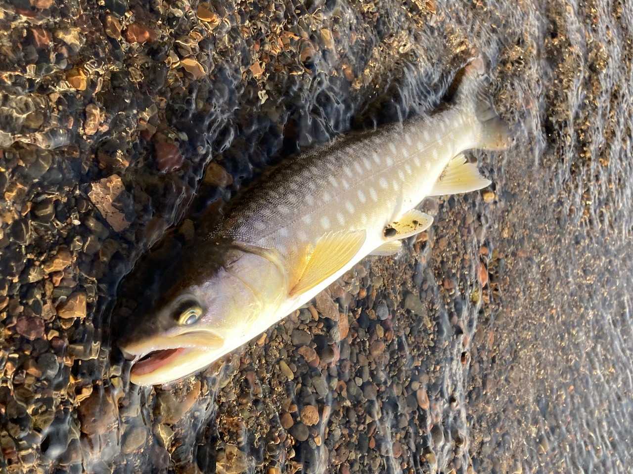 今年最後の塘路湖へ塘路湖でイイ思いしたことないっ!って方としばらく、何もなく嫌な予感...終わったか?と思った瞬間!?グッ!!キターーーっ!!途中から何となく気づいてましたがデカいウグイ(笑)実は塘路湖で初ウグイ...すると次はとなりであっ!キタ!キタ!ん?アメじゃない!?これ!ナニっ!?って、まさかと思い見に行くとありゃ!イトウ君ですよ!(笑)モーダ14gで初イトウだそうです♪この状況で出しますかっ!(笑)その後は、チビアメとウグイを更に追加し終了~まだ4月中だというのにもう終わりですか...帰りはお決まりの肉〆!!(笑)