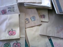 昨年のフリーマーケットは学生さんが多かったので文具やペーパーバッグ、ステッカーなどを多めに出品しようと思い仕入れたバッグやノートなどにスタンプ押し作業。。楽しくてあれもこれもと押していたら時間内に終わらなかったので明日も引き続きスタンプ押し作業の予定です。その他ハギレやボタンもたまってきたので一緒に出品しようと思っています今週は小物作りやラッピングがメインなりそうだなあ ☆☆今欲しいスタンプグッズ☆☆透かし加工ができるインクが気になっています。あとはステイズオンを色違いでいくつか揃えたいです ☆☆使い方色々の可愛いスタンプ☆☆可愛いスタンプを見つけたらまだまだ集めたくなってしまいます。 ↓↓本日のショップ一覧↓↓ラッピング倶楽部Cozy Mom コージーマム東京アンティークmerci-present(輸入雑貨)☆☆最後に☆☆オークション出品中です♪お時間がございましたらお手数ですが「カフェオミルク」で検索をお願いいたします♪↓↓年賀状印刷ならコチラ↓↓只今印刷(差出住所・基本写植)料金が約半額!!さらにポイント10倍キャンペーン中です