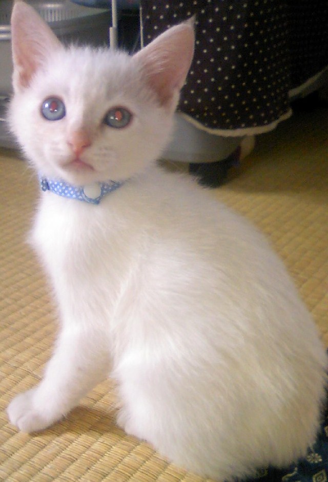 GWの前半は私の実家に子供と里帰りしていたのですが親子で楽しみにしていた妹のお家のネコちゃん達にバッチリ会ってきました♪新入りの「プーチン」君名前の由来は妹の好きなアニメのキャラクター名から付けたとの事やんちゃざかりの男の子です。ブルーの目の子は聴力が弱い子が多いらしいのですが今のところちゃんと聞こえているようです。紫外線対策の方も、レースの遮光カーテン程度でも問題なく過ごせているようなので安心しました。とにかく元気なプーチン君♪先輩ネコのミーコもタジタジです↑ミーコも大きくなりましたこのまま元気にすくすくと育ってね(*^_^*) ☆☆ネコ達の可愛い手芸資材☆☆ ☆☆入園・入学セット出品中です☆☆楽天オークション内にて「カフェオミルク」と検索下さいませ<(_ _)>お手数おかけいたします