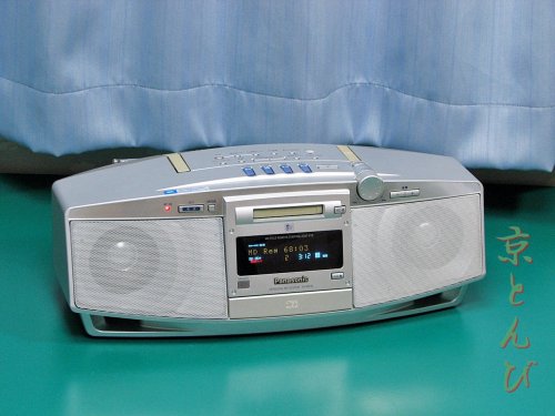 今回の修理は、「Panasonic RX-MDX5 MDラジカセ(発売日:1999年11月)」だ。 シンプルなデザインながら、回転型セレクターを搭載して使い易い一台だ。 [Panasonic RX-MDX5 MDラジカセ] 乾電池によるメモリーバックアップ(時計/設定)が可能。■主な故障と原因 MDを挿入するとすぐに排出される → MD検知スイッチの接点劣化乾電ボックスのバネ端子の腐食欠損 → 乾電池の電解液漏れによる腐食乾電池によるメモリーバックアップ不能 → メモリー故障■修理 見た目もシンプルだが、内部もシンプルだ。分解・組み立ても容易だ。 フルレンジのスピーカーユニットも、 相応に良いものが使用されている。 さて、電池ボックスの端子基板を取り出すには、中央部に配置される基板やユニットを全て取外す必要がある。バネ端子が見事に腐食して欠損している。 手持ちのバネ端子と交換。 MDユニットを取外す。同ユニットケースに若干の錆が見られる。埃の侵入も多いようだ。分解してメカをクリーニングし、MD検知スイッチに接点復活剤を塗布することで再生・録音ともに復旧。 MD光ピックアップは「Panasonic RAF1701A-KIT」 、ATRAC ICは「Panasonic MN66616RA3」と思われる。 CDユニットもクリーニング。CD光ピックアップは「Panasonic RXQ0633」のようだ。 組戻し後、乾電池によるメモリーバックアップの確認テストをしたところ、機能しなかった。恐らくは記憶メモリー用ICの故障と思われる。仕方なく主基板を交換して復旧とした。 その他各部のクリーニング、組戻し、点検を行う。動作確認と修理後のエージングを実施し、作業完了。 --- 分解清掃修理した や や を出品中 --- ★京とんびの『もったいない』オークション★ ♪ あの頃の懐かしい や や を もう一度 てみませんか 音楽と一緒に 懐かしい思い出が甦ります ♪