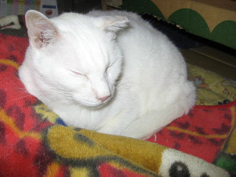 あい♀母ちゃんの座椅子の毛布の上で左はエル♀右は寅♂母ちゃんの座椅子の毛布の上でボク♂父ちゃんの座椅子の毛布の上できじ丸♂父ちゃんの座椅子の上で(・_・;)う~~ん、箱の中で寝てる白にゃんこは誰にゃんだろう?ホワイト♂かなぁ~?椅子の上の箱の中で18日は~~最低気温0.9℃最高気温13.5℃今日も朝は寒かった。朝から晴れたり曇ったり。日中は少し気温も上がり、昨日に比べると過ごしやすかったなぁ~。様子見(=^-^=)達は、あい♀ボク♂大♂きじ丸♂の4にゃんこ毎日の飲み薬はシリンジで、ボク♂きじ丸♂の2にゃんに飲ませてます。まだまだ手がかかってます。申し訳ないですが、暫くは、コメントへのお返事は無理みたいです我が家の25にゃんこの紹介は2016年01月05日の日記←25匹の猫達の画像と短い紹介を書いてます。 左上の方にある『ホーム』をクリックして入ると、毎年のにゃんこの紹介も見れますョ。
