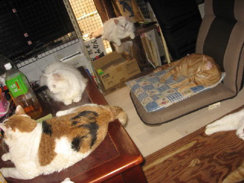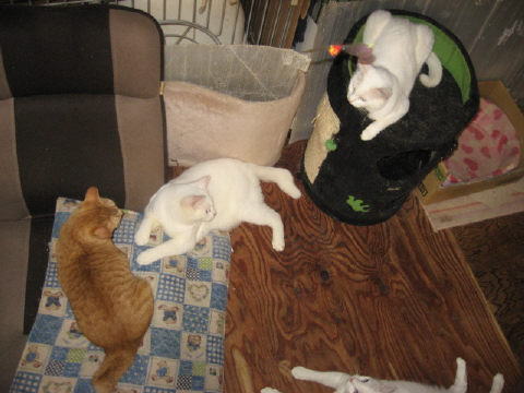 様子見(=^-^=)達は、あい♀ボク♂大♂きじ丸♂の4にゃんこ