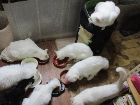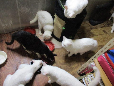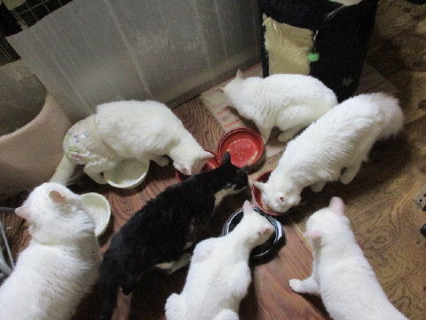 すぐ集まって来るにゃんこや、無くなった頃に来るにゃんこ。