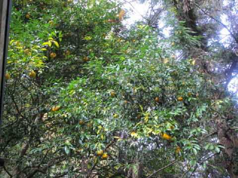 下の方にたくさん生ってるけど、下の方でも、脚立や高枝バサミを使わないと採れないですが・・・。