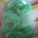 先日翡翠のお店「ジョイテック」さんのオークションでお得な値段で落札した、「宝珠で遊ぶ古代龍と如意宝珠」が彫られたペンダントが届きました。予想してた以上の美しさにウットリです。古代龍も元気いっぱいでかわいいし、一緒に彫られてる如意も、ハート形でプリティです♪携帯のカメラですが、撮ってみました♪ちなみに、ジョイテックさん撮影の美しい写真はコチラこの元気いっぱいの龍を見たとき、すぐに、子供のお守りにしたいと思い、ラッキーなことに落札できたので、とっても縁があるなぁって思いました。さっそく息子に着けさせて一緒にお出かけしてきました、息子もブレスとかペンダントが好きなので喜んでいます。ついでに、お母さん(私)も着けてみました。この龍が到着する前は前回の日記にも書きましたが、突然の雨に降られたりクーラーの水が垂れてきたり、水にやたらと縁がありましたが実際に龍が到着してみると出かけたいな~って思ったら、ザーザー振りの雨がやんでたり、雨がやんだので自転車で出かけてみたら、途中でポツポツと来たものの、すぐやんでくれたり、といい感じです♪龍が水をコントロールしてくれてるかのようです。大切にしようと思います♪オマケの小さい象さんも、綺麗な緑色でとってもかわいいかったです♪