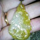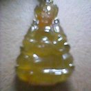 残り1個だけ残ってたペンダント♪青メノウだそうです。ほとんどカルセドニーっぽいです。トロンとしてていい感じです。3千円くらいでした。 クリソプレーズは翡翠の色で言うと若竹みたいな明るい緑色がとても元気をくれます。5月の若葉のイメージの色です。しかもクリソプレーズって、わりと高いのに、これは2千円と買い得でした。昔、アレクサンダー大王が、この石を大変気に入って常に身に着けて戦いに勝ちまくっていたのですが、ある日、このクリソプレーズを無くしてからは負け続け、ついには命を落としてしまったという逸話があります。 昨日、吉峰堂さんから届いたばかりの翡翠ペンダントです。ヒモを通す穴が小さかったので、またミニルーターが大活躍♪ちょこっと穴を広げました。元宝(昔の中国のお金だったと思う)の上にリスが載ってる可愛いデザインです。金運に効きそうです。しかも、お店の画像では気づかなかったのですが、なんと裏面には別の彫刻がありリバーシブルになってました♪ 2匹の小鳥が如意(なんでも願い事を叶えてくれるモチーフ)の上に乗ってチューしてハートの形になって寄り添ってます。しかもセールだったので1万円で買えてラッキーでした。(買った日の夕方に、HPを見に行くとセールが終わってました)縁ですね~♪ こちらは、穴あけがつい先程完成したルチルです。針ビッシリです。実物より、かなり金色に写ってますが、実物はもうちょっとスモーキー色です。針は金色です。このルチルは2年程前にたしか1万円くらいで買ったんですが、今はルチルが値上がりしてるそうなのでもう1万円とかでは手に入らないんだろうなぁって思います。 リンクしてるpiko2004さんのページで可愛いローズクオーツをペンダントにされてるのを見て、とってもステキだったので、私も、手持ちのローズクオーツのタンブルに、また穴を開けてペンダントを作ることにしました♪優しいピンク色が可愛いです。今後の予定は、割れた翡翠クシの修理にも取り掛かり、ずっと前に考古学の博物館で買ってきた滑石キットがあるのでこれで彫刻に初挑戦したいなぁって思ってます♪