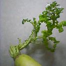 最近、丸々とした大根が安かったので、つい多めに買ってしまってしばらく置いてたところ・・・大根の葉っぱの一部がグングン伸びてきました。直角に曲がってるのは、光に向けて伸びたものと思われます。しかも、なんと花まで咲きました。カスミ草にも似た清楚な白い花です(つぼみは黄色でしたが)本体の大根部分を栄養にしてるらしくただ置いてるだけなのに、スクスク育ってます。少し大根はしなびてきましたが、まだまだ大丈夫のようです。食べるつもりで買ってきた大根ですが今は観葉植物として食卓に飾ってます。花つながりで、お花の指輪デース♪