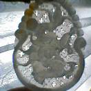 昨日から、こないだ折ってしまったクシの修理を始めました。まず買ってきたのは砥石とドリルの刃でした。砥石を使ってセッセと手で削りましたが手前の2本の折れた跡は比較的平らになってききつつあったたのですが、真ん中の2本の折れた跡が、角度と分厚さ的に砥石が届かず、デコボコのままでした。穴を開けたい翡翠作品もあったので、ドリルの刃を持ち、こちらも手でキリキリとやってたのですがどちらも、ほとんど成果があげられず半日でギブアップしました^^;縄文時代の人って手動で勾玉とか作って、スゴイって心から思うことが出来ました。砥石とドリルの刃手動にはコリゴリしたので、文明の利器に頼ることにしました。ミニルーターセット(一番安いのを選びました。ミニルーターと、ビットが10本くらいついてて2980円♪)あまり、工具とか触ったことが無かったのでドキドキしましたが、やりはじめるとどんどん穴が掘れていくし(昨日、手動でやってたから、機械のすばらしさに感動)面白い♪穴を開けたかった作品はコチラ♪ もともと桃の上に乗ってる小さいお猿さんの左手の下あたりに小さい穴があって、そこにヒモを通してもらっていたのですがなんとなく、お猿さんの腕が細いのに、桃が大きくて重いのでお猿さんの腕に負担がかかって取れちゃったりしたらイヤだなぁって思っていたのです。なので、大きい桃のほうにヒモを通せる穴を開けちゃうことにしました。穴が開いた桃です(私のミニルーターは5分ほど使ったら、熱くなってくるので休ませ、休ませ、やったので、ここまであけるのに半日くらいかかりました)開通したときは感動しました。ミニルーターを買ってよかったと思いました。ミニルーターの取説には水の近くで使わないようにと書いてましたが、石の粉を吸い込むと咳が出るのでルーターに水がかからないように注意しながら、水をチョロチョロかけながら作業しました。今度は、砥ぐビット(?)に交換して、こちらを修理する予定です。こないだマルコポーロさんから届いた翡翠のお猿さんです。すごいプルプルでキュートです。すごく小さいのでカワイサ倍増です。このお猿さん、撮影しようとしたらツルっとすべって、落ちてしまい・・・カツーンって跳ね返って、アっというまにどこかに行ってしまったので1時間も探しまくりました。跳ね返ってたので、割れてたらどうしようとも心配でしたが(こないだの折れた翡翠クシのこともあるし)、今回は、無事な姿で発見できました。ちなみに、ジョイテックさんでこのコも注文中です。サルに、はまってます。