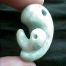 かわせみどんに作っていただいた若桜翡翠の獣勾玉と、ブーブ勾玉です。 以前に息子と一緒にミネショへ行ったとき横向きになった獣形勾玉が息子には大好きな車の形っぽく見えたらしく、とても欲しがっていたので、いつかプレゼントしようと思っていました。最初のキッカケになった獣形勾玉と、できれば車そのものの形をした勾玉も欲しいなぁって思いかわせみどんにお願いしてみましたところ、快諾してくださり今回のこの2個の勾玉がめでたく誕生しました。どちらも、とても可愛らしい勾玉です。息子も大喜びで、2つの勾玉は息子の宝物となり、大切に大切にしています。かわせみどん、ほんとうにありがとうございました♪