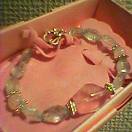 たまねぎぼうずさんのブログの70000アクセス記念プレゼントのローズクオーツブレスちゃんが、さっき届きました♪さっそく、開封♪うわぁ~☆とっても丁寧で可愛いラッピング♪イチゴセロテープも可愛い♪そして、じゃぁん♪こちらが主役のブレスちゃんです。メインの真ん中の石はとっても透明感のあるプルンとしたローズクオーツ♪サイドは清らかな水のようなアクアマリンで紡がれてて、2粒の青いシラーが美しいブルームーンストーンもポイントです♪携帯カメラで撮った画像なので、たまねぎぼうずさんが撮られた美しい写真も載せておきます。ローズクオーツブレスブレスを見た第一印象は、なんて女性らしい綺麗で可愛いブレス♪♪♪でした♪たまねぎぼうずさんの真心がいっぱいつまってるようで、暖かさに満ちてました♪さっそく着けてみました☆とっても、女らしく優しい気持ちになれます♪うれしくてドキドキ☆してきますそして、なんと、チョコアラレまで入れてくださってました♪以前、たまねぎぼうずさんのこちらの記事を読んで、すごく気になってたので超うれし~☆☆☆☆☆さっそく食べてみました。ポリポリ・・・雅な美味でございますぅ♪♪♪おいしい匂いを嗅ぎつけてきた子供と、奪い合いになっております。夫はまだ寝てるけど、起きる前に子供と私とだけでぜんぶ食べちゃいそうです^^;リアル生活で、ママ友でも親友になれるんだぁって思うほど、大切に思ってた友とこないだから、ある出来事をキッカケにあっけなくギクシャクして(表面上は仲直りしたけど、たぶん、お互いまだ心にシコリがある)、心が疲れ、お出かけする気にもなれず家族を道連れに、ひきこもってたこの土日・・・たまねぎぼうずさんの優しさのいっぱい詰まった贈り物をあけたとき、ホロっと、嬉し涙が出てきました。なんだか元気も出てきて、復活できそうな気分♪このブレスちゃん、大切にします♪すごく気に入ったのでしょっちゅう身に着けます。たまねぎぼうずさん、本当にありがとうございました♪