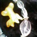 なんだか暇だったので、バトンを作ってみました♪自分で作った質問に、自分で答えるってなんともいえない変な気分でしたが、面白かったです♪1.なんの石が好き?ここ2年ほど、翡翠が大好きです。その前は水晶や、インカローズ、ラピスが好きでした。2.1でお答えになった石の、どういうところが魅力?翡翠は、縁起物の彫刻や、勾玉が多くて、翡翠と縁起物のダブルのパワーでお守りになりそうなので(私は、お守りマニアでもあります)そして、翡翠は色が豊富で、透明~不透明まで石によって、さまざまな表情を見せてくれるところがいいです。水晶なら金ルチルが一番好きですが、綺麗だし金運に良さそげだからです。インカローズは、ばら色の人生に導いてくれるという石言葉と愛らしいピンク色に惹かれときどきバラ模様がついてる石とかもあって女性のための石という感じがします。ラピスも強力なお守りって感じが魅力で、なんといっても色が綺麗です。3.石に関する本でおすすめの本?いろいろ、ありすぎて絞るのが難しいですが、以前開催された、翡翠展の図録は当たり前ですが翡翠のことばかり載ってるので、翡翠好きさんにはすごくオススメです。私はよく眺めるので普段の読書用と、保存用を持ってます。4.石と、どのように暮らしてる?お守りにした石とは、一緒にお風呂に入ったり眠ったりしてます。一人のときに、心の中で話しかけたりもします。お守りにしていない石たちも、よく眺めたり、触ったりしてコミュニケーションをしています。石って生きてるなぁって、日々石と触れ合っていると思います。5.自分を石にたとえると、なんの石?これは、自分で思いついておきながら難しい質問です。翡翠とかインカローズとかルビーとかの華やかな石を書きたかったけど、なんとなく直感で、素朴な親しみやすさのあるオレンジ系のメノウかなって思いました。7・あなたの元に縁あって来た石は、今どういう気持ちだと思いますか?「うれしい」8・このバトンをやってくださる方がいらっしゃれば、どなたでもご自由に。。。♪