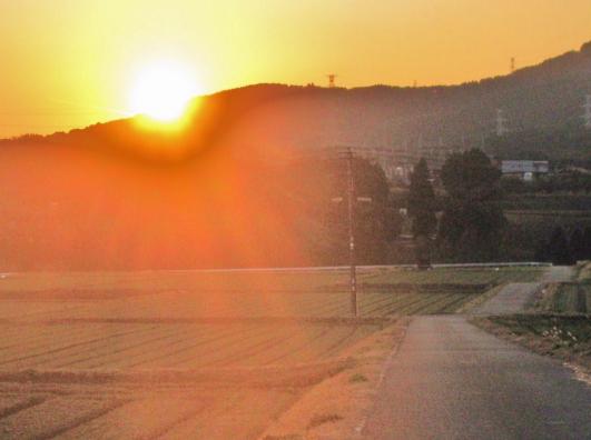 ここは私のジョギングコース。走れる時だけのジョギングですが、本日の夕陽と地元の田園風景をお見せしました。九州、すごか!This is my jogging course here. I jog only on my convenient day. I showed a today's evening sun and a local rural scenery. Kyushu, the Great!