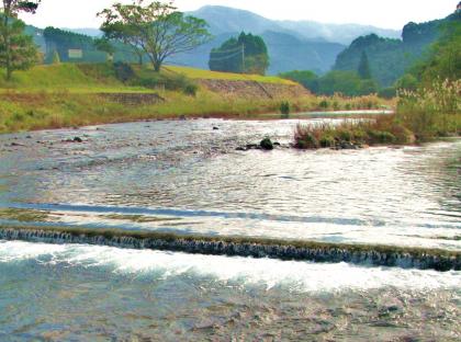 清流で有名な堅田川水系「山口川」。子供たちも遊べる河川公園は静かだった。九州、すごか!It's a famous as limpid water "Yamaguchi River" which is one of Riv. Katada water system. The River Park that children can also play was quiet. Kyushu, the Great!