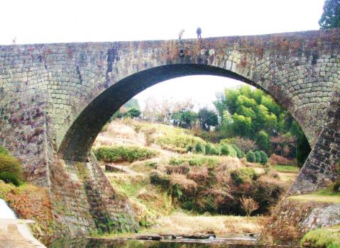 通潤橋。灌漑のためにわざわざ大きな橋の建設が江戸時代必要でした。今では見世物として現役です。橋上はご覧のように手すりがなくスリルある散歩が楽しめます。九州、すごか!The Tsujun-Bridge. The construction of the big bridge was necessary for irrigation especially in Edo era. It is active as a show as of today. As you see there is not a handrail on the bridge, and you can enjoy the thrilling walk. Kyushu, the Great!
