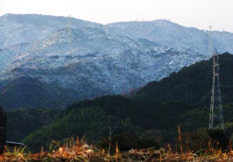 昨日から続く雪は平地では全く積もらなかった。がしかし、裏山を望むと案外の雪だったことが分かる。自然、すごか!The snow which continued from yesterday was not piled up at all on the plain. However, when I saw the mountain behind my office, I realized that it was snowy beyond expectation. Nature, the Great!