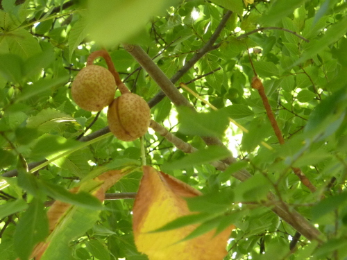 昨日138タワーへ行って来ました。木陰にシートを引こうとしたら何やら見たことが無い実が落ちているのを見つけて。。。何の実だろうと木に掛かっていたネームプレートを見てみたら「トチノキ」でした。見上げたら。。。生っている実を発見!木陰から見上げた空とタワー植え込みとタワーホイップクリームみたいな雲お洒落な時計のある丘。。。持ち帰った栃の実。。。これからすぐに植えようと思います