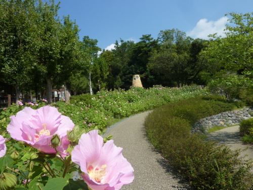昨日は息子の幼稚園の遠足でした。朝方まで雨が降っていましたが、出掛ける頃には晴れて来ました。ですが雨の場合行く予定だった、愛知万博跡地の『モリコロパーク』へ行くことになりました。白とピンクの芙蓉が綺麗に咲いていました上の写真の奥の方に見えているオブジェの中。。。ステンドグラスがはめ込まれていて綺麗でした大観覧車