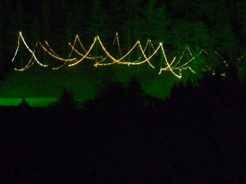 月が輝きだし日が暮れてきました。。。ナイトパレードの山車?の一つ。。。パレードの後は花火ですライトアップされた建物が綺麗ですアーケードを抜けた広場の噴水のライトアップ