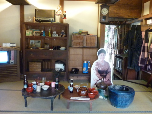 日曜日に出掛けた日本昭和村にて昭和の時代のお茶の間。。。昭和電気屋さん。。。昭和の電柱&オロナミンCの看板