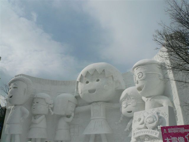 長らくご無沙汰でした!ごめんなさい!!!2月にはいり、春はそこまできたか!?と思えば、激寒っ!な日々が続いたり。。。やっぱりまだ冬です。というのも、ただいま札幌に来ていまして、、、(仕事ですよーーー!)とにかく寒いのですが、なんというか、札幌にいると、寒いって覚悟ができてるので、東京の寒さより寒さが厳しくないような気がします。。。今回の札幌は街中人だらけでしたよ!!!雪祭り!!!私も生まれて初めておっきな雪像を見ました!!!こんなかわいい雪像があったんです~ちびまるこちゃんじゃなくて、でかまるこちゃん!!!すっごいおっきかったですぅぅぅ~感動っ!!!カニもたらふく食べたし、ラーメンも食べたし、札幌満喫しました~~~