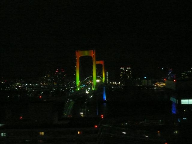 レインボーブリッジがレインボー色に!12月限定で虹色なんですって~♪芝浦に住んでるお友達の家からの夜景。。。こんな景色を毎日見てると、心が豊かになりそうですね~