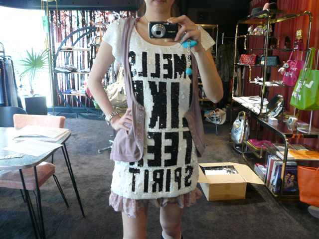 今日は大桑マイミちゃんが渋谷店に遊びに来てくれました~かわいい~かわいい~ってキャッキャッはしゃいで喜んでくれてましたよん☆うれしいな~どれもこれもチョーお似合いです!●Studs One-P スタッズワンピース●私とおソロのワンピも着てくれました!白黒コンビになりました。このワンピ、スタッヅがいっぱいついてて、セクシーですよ~歩く度にシャンシャンなるので、それまた、マイミちゃんも大ウケっ!!!迷子にならないワンピです。