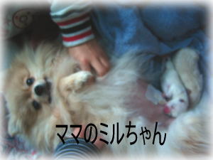 犬の出産を何度か経験しても、その時その時違ってとても緊張します。今回のお産はかなり大変だった~。●30日の午前10時・・体温が下がる 呼吸が少しだけ速い。●レントゲン・・・・いつもより頭が大きく思えたが様子を見る事にした。●午後5時・・・・・微弱陣痛?●午後7時・・・・・お腹を仰向けにして爆睡 少し手がプルプルしている。●午後9時・・・・・子犬の頭が出なくて詰まっているような気がして病院へ行く。●午後10時・・・・ まだ産道の動きがないし陣痛がきていない。といわれて自宅戻る●31日午前1時・・・微弱陣痛?●31日午前2時・・・σ(^○^)の膝にのってお腹を擦るようせがむ。●31日午前3時・・・落ち着きがなく、うろうろ、少しいきむ。●31日午前4時・・・黒い袋が二つ出る。(子犬を包む外側の袋)帝王切開を覚悟して獣医に電話。●31日午前4時15分・黒い袋が一つだけ破れる。●31日午前4時30分・子犬を包む内側の袋だけが出る。 この時黒い袋一つと内側の袋と2つ出ている。 指をつっこんで子犬の頭が産道に来てるか確認。 子犬の体に全く触れない。30分待ってみる。●31日午前5時・・・指を入れても全く触れない出てこないいきんでるのに●31日午前5時20分・・・病院へ到着 そして帝王切開●31日午後6時・・・・・頭が骨盤に引っかかっていた男の子は仮死状態で、後に控えていた 女の子も呼吸が止まっているスタッフの必死の人工呼吸と心臓マッサージにより蘇生できた!!この時の男の子の体重なんと160g!女の子120g! あと数分遅かったら、二頭ともダメだったと仰っていましたミルもとっても苦しかったと思います