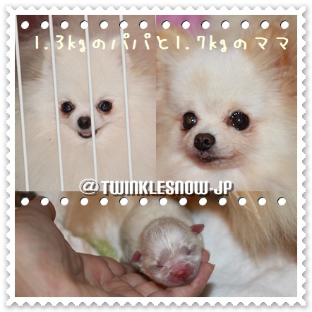 ポメラニアンのブリーディングは難しいのです。犬種の中で一番と言われます。小さい可愛い子を作出しようとすれば、帝王切開になる事も多いです。折角 自然分娩で出産できても 小さすぎてお乳を吸えずカテーテルで育てても、成長できず・・悲しい思いをする事も多くあります。そんな中でも、しっかりと元気に産まれ自力でお乳を吸って育ってくれた子たちはとても強い生命力で、健康そのもの♪めちゃくちゃ可愛くて、元気いっぱいで、構成がよくてパーフェクトな子を作出したくて リスクが大きくても誰になんと言われようと自分なりのブリーディングをしてきました♪さて、赤ちゃん達は眼が開いてないのでその前にパパとママを紹介♪あとケムちゃん×ポックリトちゃん×ピース画像は後ほど♪